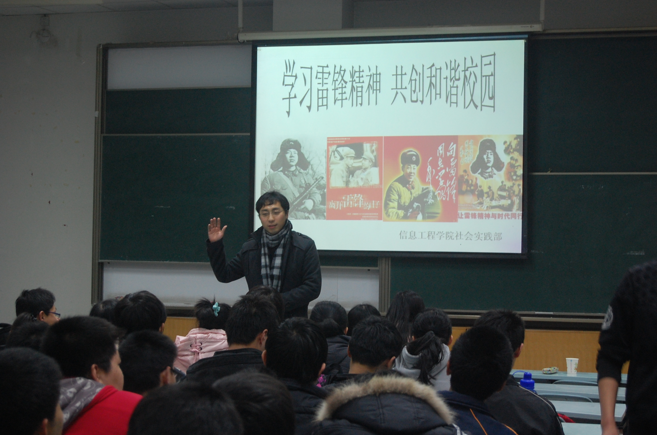 桂恺老师在影片开始前做了简短介绍,他指出在雷锋同志逝世50周年及毛泽东同志为雷锋同志题词49周年之际,观看影片学习雷锋精神具有良好的教育意义。雷锋精神曾经深深影响他的世界观、人生观、价值观,该影片在故事结构、叙事手法等方面均属上乘,希望同学认真观看。