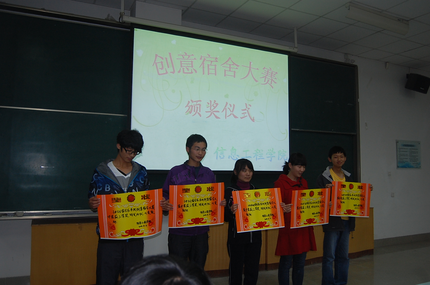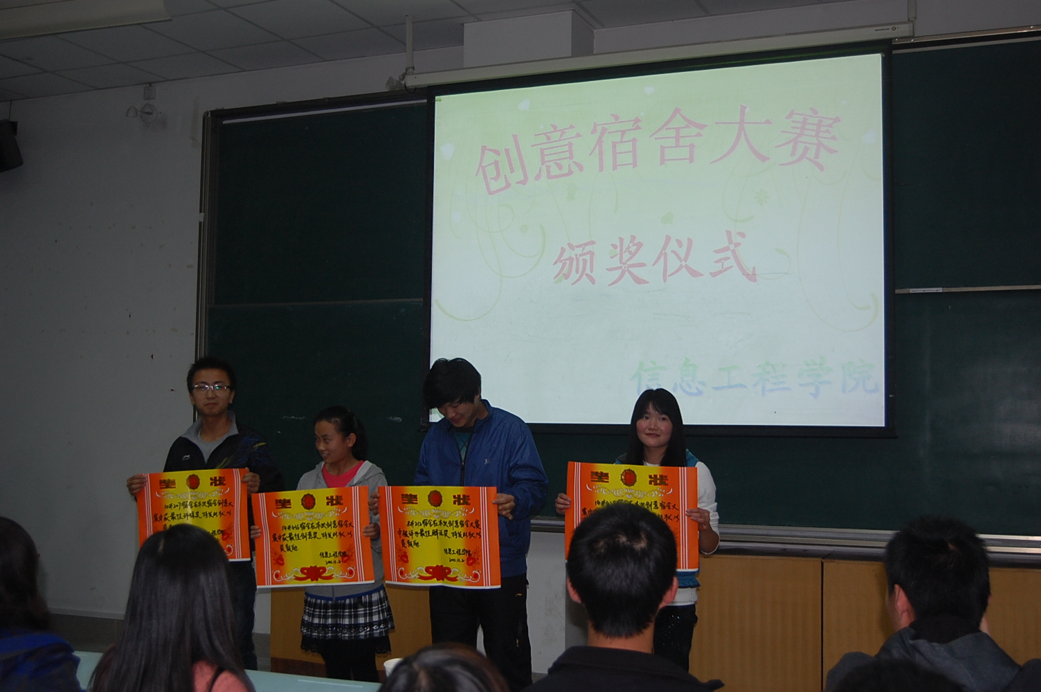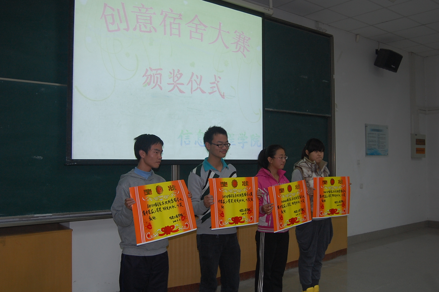 11月2日下午,我院在M2教室举行了2011级“创意宿舍”大赛颁奖仪式,辅导员倪玲老师、校学生会生活部副部长付婷婷以及到场的各院生活部部长为15个获奖宿舍颁发了奖状。