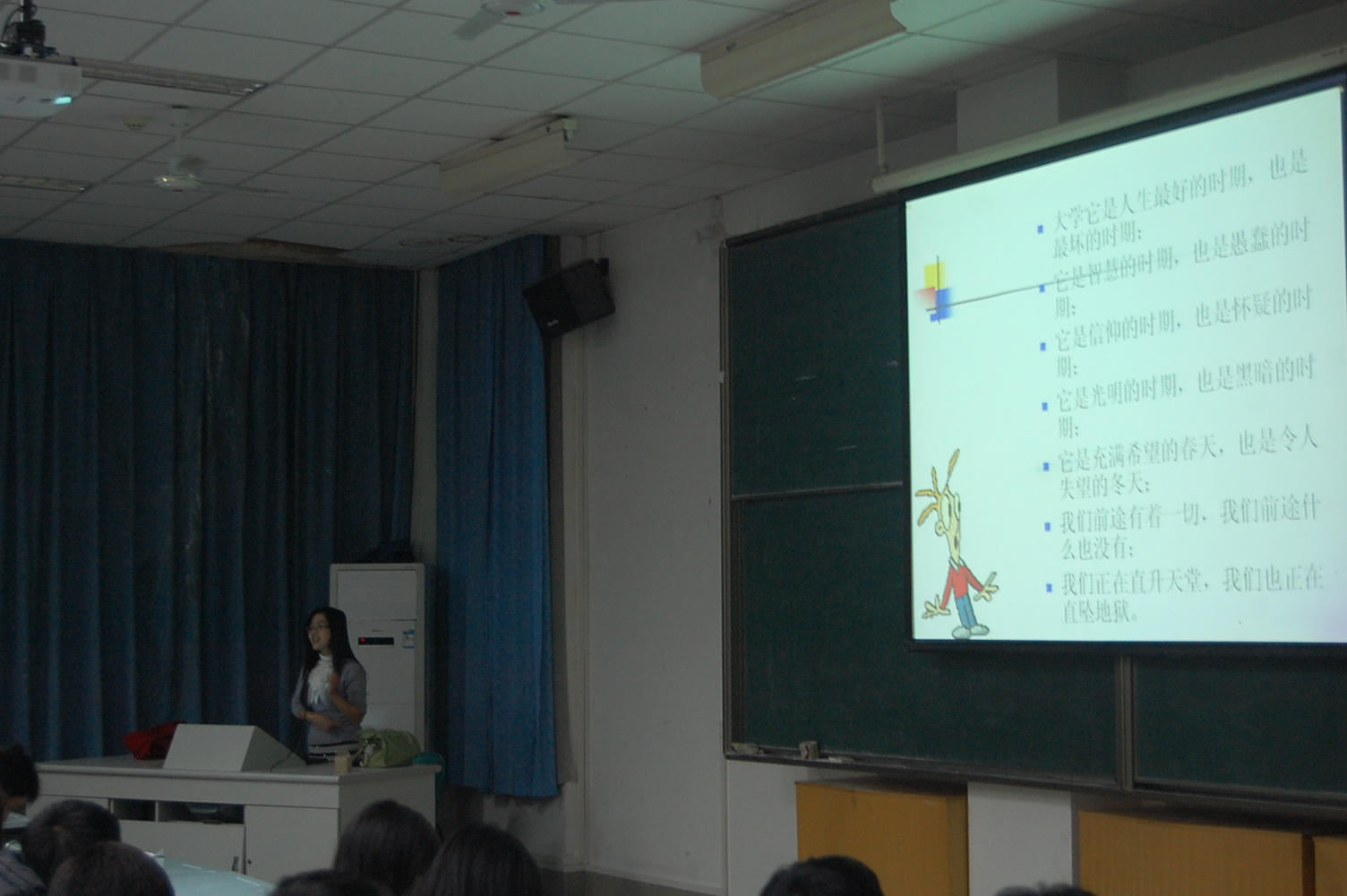 团课开始,倪老师首先分析了大学与中学在人际、学习、情感及生活方面的不同,解开了同学们的诸多疑惑。随后进行了颇有趣味的心理及情感测试,将同学们的热情调动起来。接着,倪老师讲解了大学生在人际交往方面的细节与技巧,言辞恳切生动,拓宽了同学们的视野,活跃了同学们的思维。当她讲到情感问题时,现场气氛达到高潮。倪老师深度剖析了当代大学生在情感生活中的现状与存在的问题,言语幽默又不失风范,指引在座同学客观理性分析自己的现状,在进行情感选择时要目光长远、立足未来。讲座最后,一段关于梦想与亲情的视频更是让全体同学感动不已。