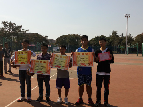 在为期21天的精彩角逐中,各专业人员均表现出极高的热情,为大家献上一场又一场扣人心弦的比赛。经过激烈的比拼最终信息工程学院计科队和信管队分获第一名和第四名,人文学院社会学队和法学队分获第二名和第三名。稍作休息后,信息工程学院主席朱玉鹏、副主席王浩镔,人文学院主席刘晓琦、副主席白建超分别为四支球队颁发奖状并赠送篮球作为本次比赛的纪念品。此外计科队的王金成同学在此次比赛中荣获“最佳球员”称号,信息工程学院体育部部长韩逸超为其颁发证书。随着四支队伍的参赛者与工作人员合影留念,本次篮球赛也顺利落下帷幕。