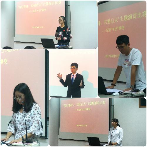 2017年9月17日晚,由水建学院、外语学院、人文学院、创新学院和信息学院五院组织部联合举办的以“落以警钟 共勉后人”为主题的纪念九·一八演讲比赛于信息工程学院副201会议室拉开了序幕。