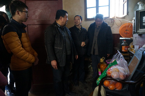 1月18日下午,我院张志勇老师带领学院学生看望了姚南村的安宏发老人。老人今年74岁,老伴早年去逝,膝下无子女,独自生活,无工作,无经济来源,生活十分艰辛。在村主任的带领下,老师与同学们前往老人家中,为老人带来一些日常生活用品与食物,并询问了老人的日常起居与身体状况。