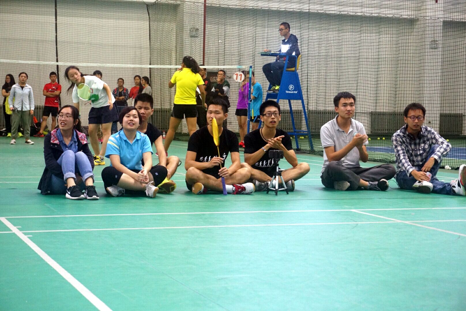 第三场女双比赛,女队员们可做足了准备,在第二场比赛为队友加油的间隙还在空闲场地进行了充分的热身。尽管两队比分步步紧逼,但谁也不让谁,我方队员灵活的身姿,默契的配合也奠定了他们胜利的基础。