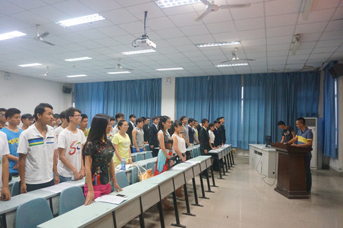 会议伊始,全体人员起立,奏团歌。然后,2014届学生会主席杨迅超同学宣读大会须知事项,并且向大家汇报了这一年来学生会工作情况、取得的成绩以及不足之处。接着由朱旭菲老师宣读2014届团工委学生会干部名单,倪玲老师为2014届学生干部颁发聘书,郎蕊老师为2014届主席团成员颁发聘书。