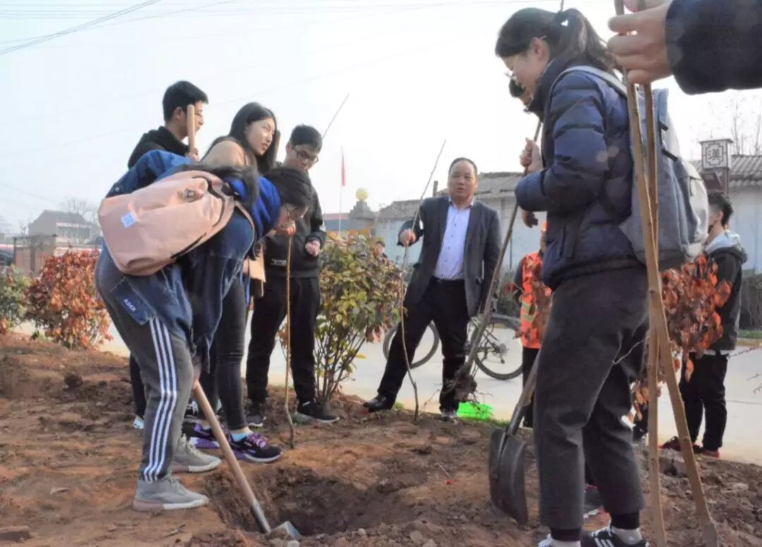 3月11日,信息工程学院社会实践部的志愿者来到了东汉伏波大将军马援故里--毕公村进行志愿植树活动。